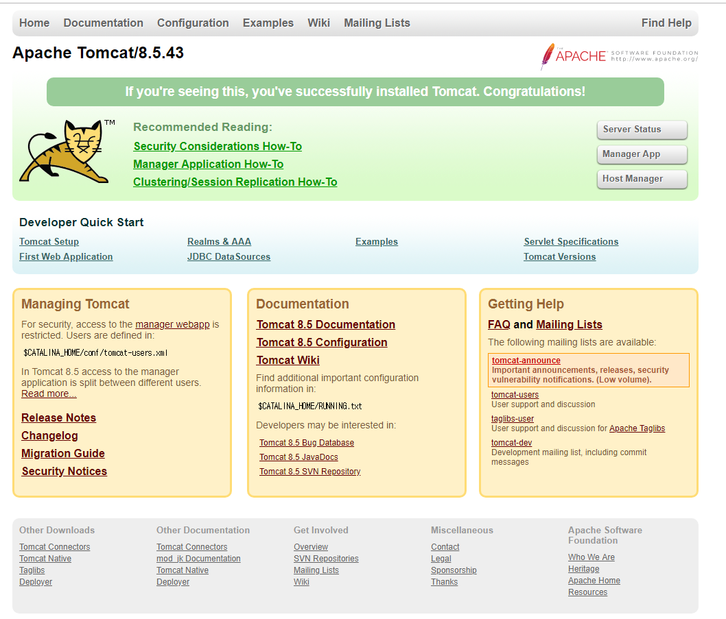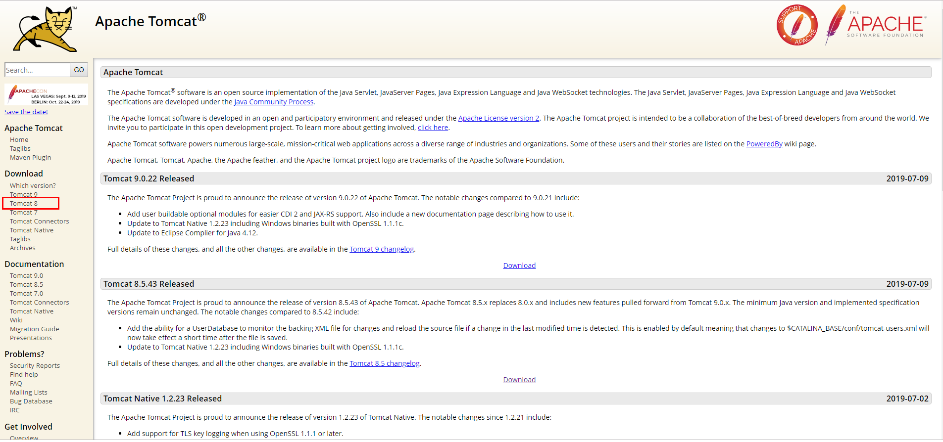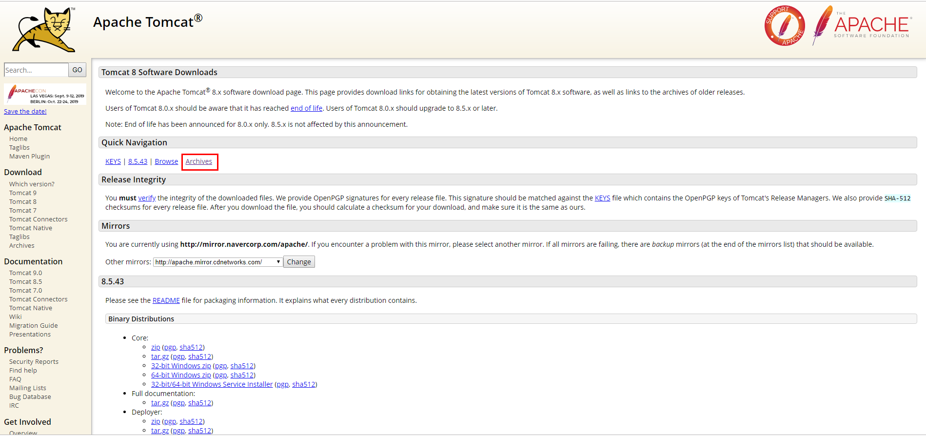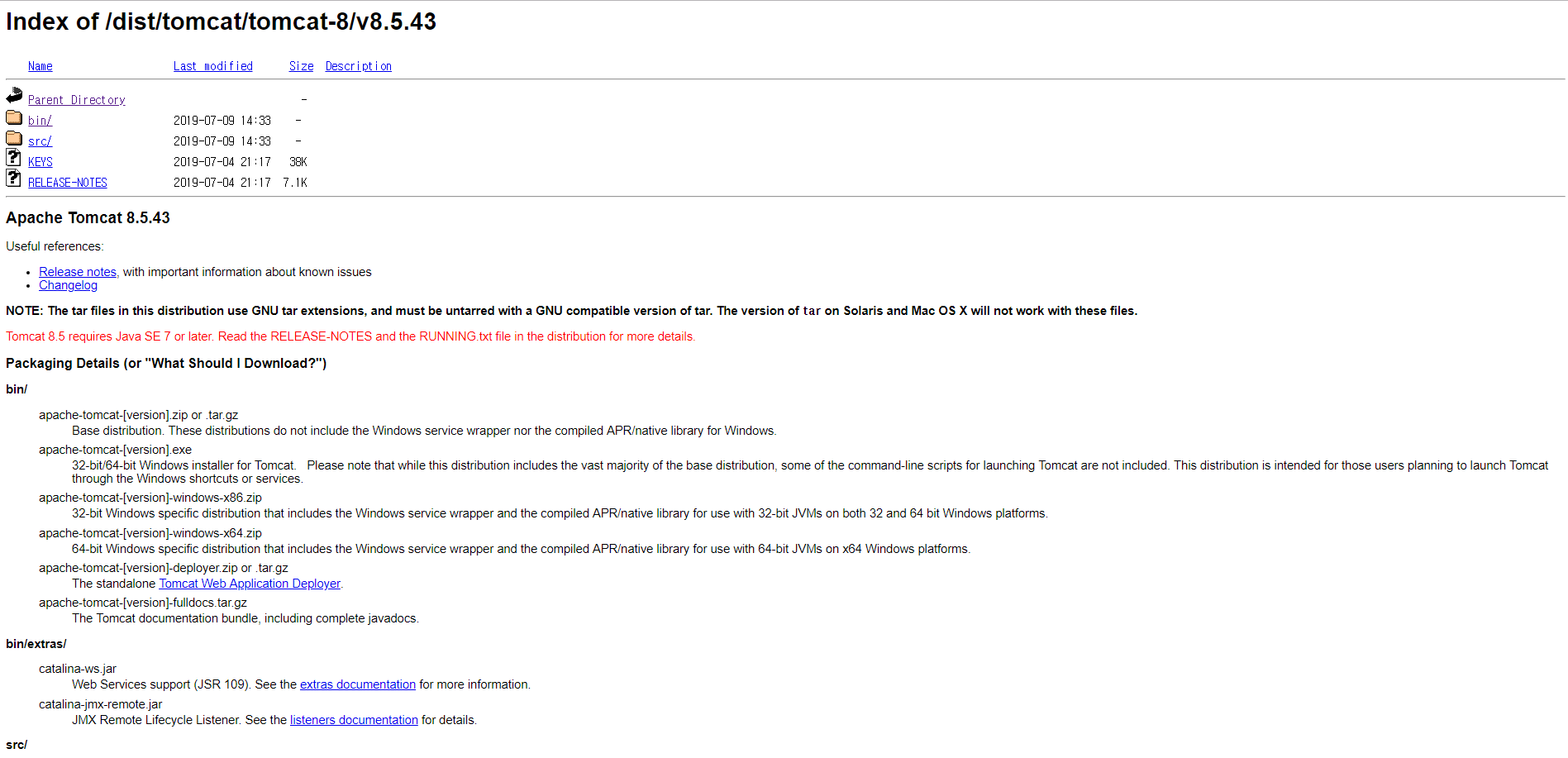 #wget http://archive.apache.org/dist/tomcat/tomcat-8/v8.5.43/bin/apache-tomcat-8.5.43.tar.gz