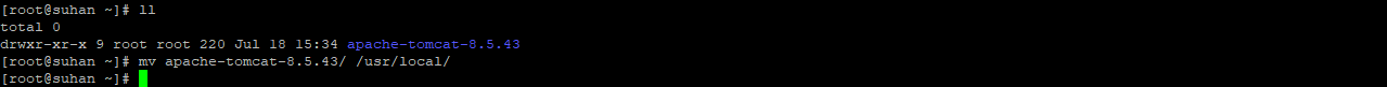 # mv apache-tomcat-8.5.43/ /usr/local/