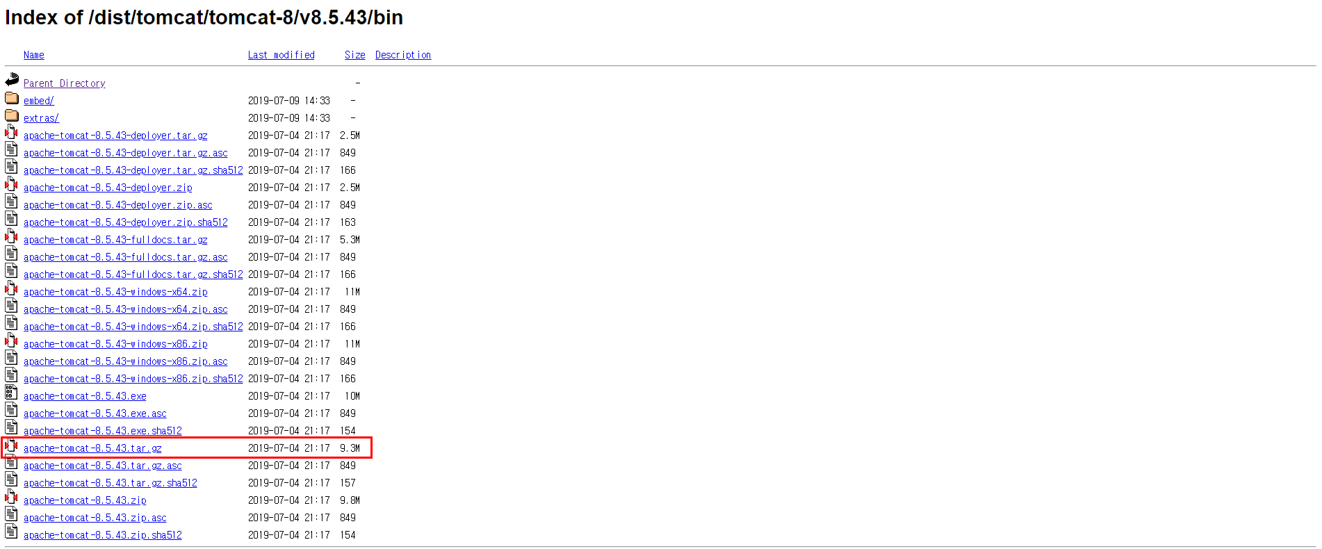 # tar xvfz apache-tomcat-8.5.43.tar.gz
