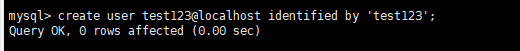 mysql root 계정으로 접속우 아래와 같이 입력하여 새로운 계정을 생성해줍니다.