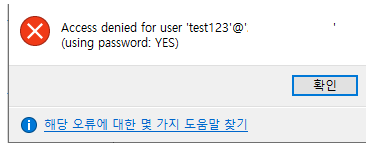 이유는 처음 계정 등록시 ***@localhost 로 하였기 때문에 로컬에서만 접속을 허용하였기 때문입니다.