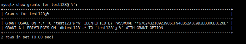 show grants for test123@'%';