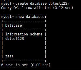 위와 같이 ROOT 로 접속하여 데이터 dbtest123 이라는 데이터 베이스를 하나 만들어 주었습니다.