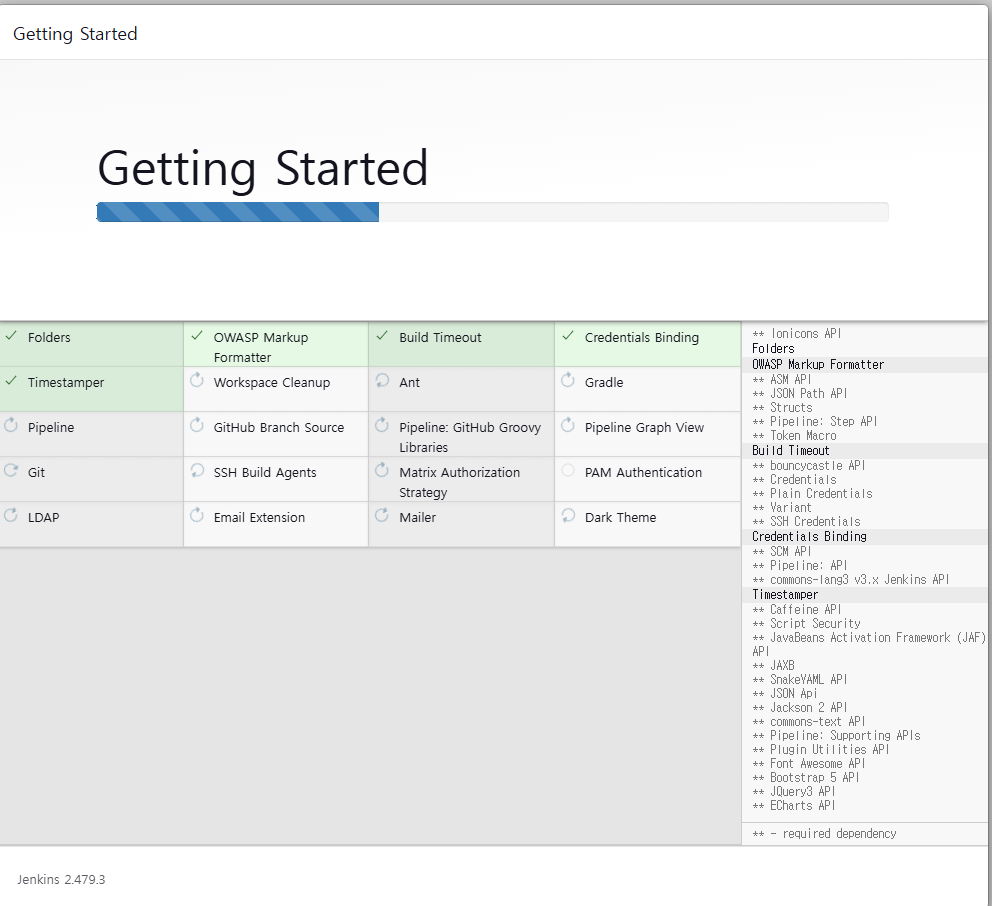 이화면 까지 나오시면 이제 jenkins 설치는 마무리가 되었습니다.