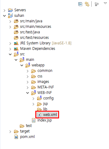 위치는 아래 이미지와 같이 src/main/webapp/WEB-INF/web.xml 에 있네요.